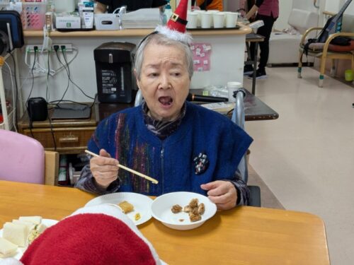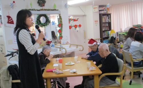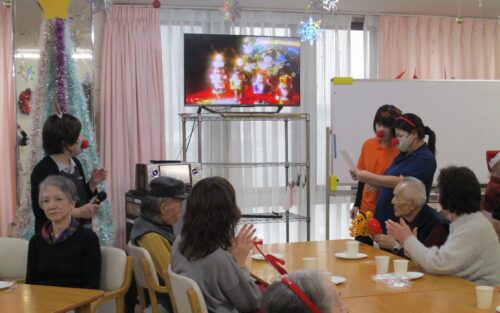 最後は家族様より施設に向けて感謝のお言葉・愛にあふれた介護してもらっているとのお褒めのお言葉を頂き、皆涙、涙。。感動的なクリスマス会となりました。