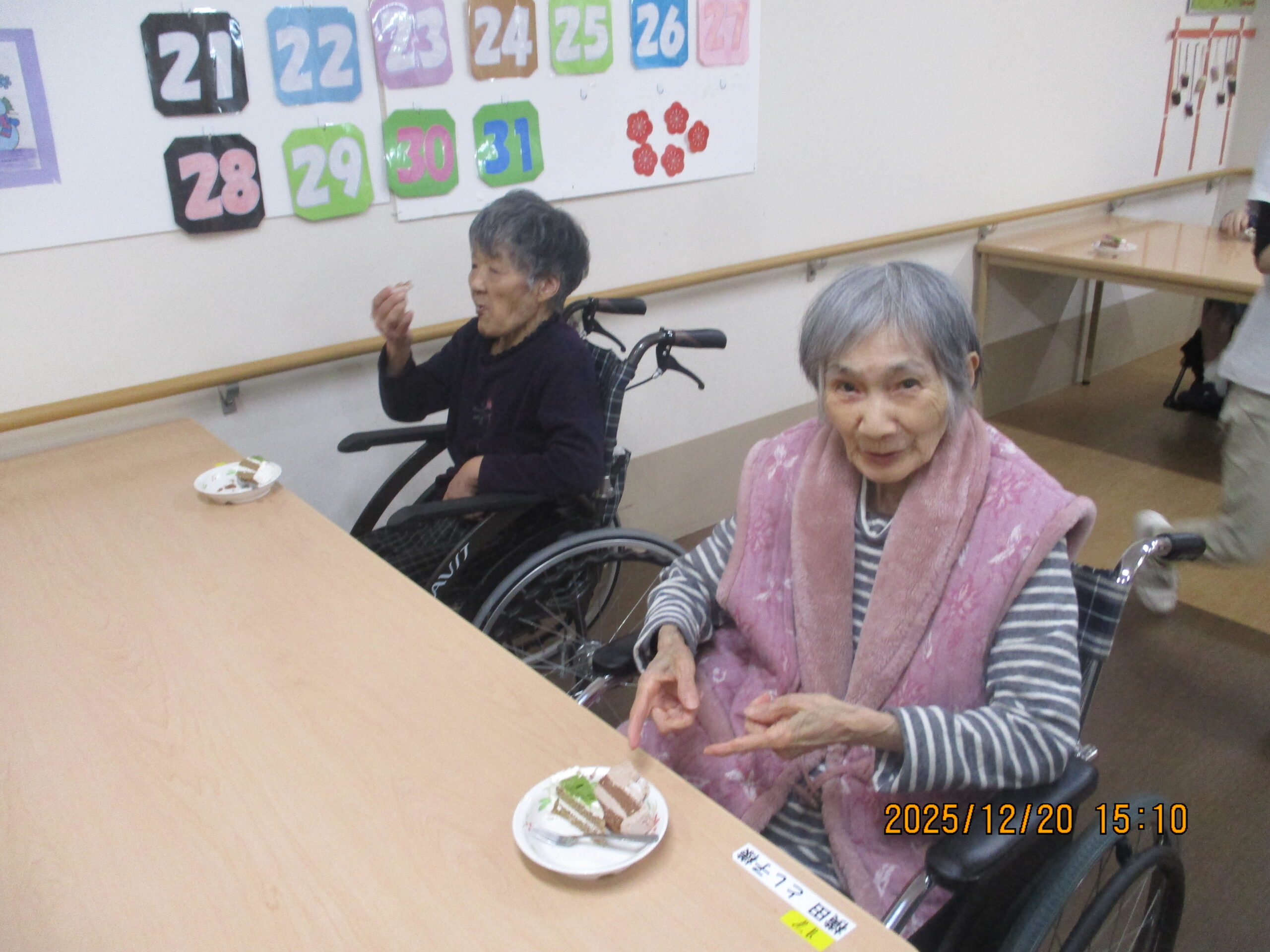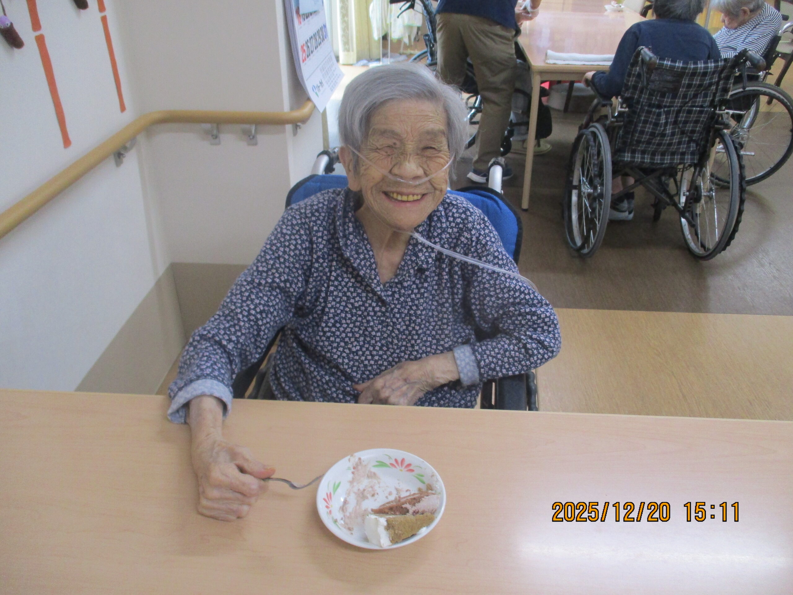 さわやかひめじ館 クリスマス会② 2025-12-24 2025-12-24 12月20日に行われたクリスマス会の様子です★ ケーキを美味しそうに召し上がっておられました🍰💖 甘くて美味しいケーキはいくらでも 食べられますね(⋈◍>◡<◍)。✧♡ 本日のブログ担当 森でした🎅