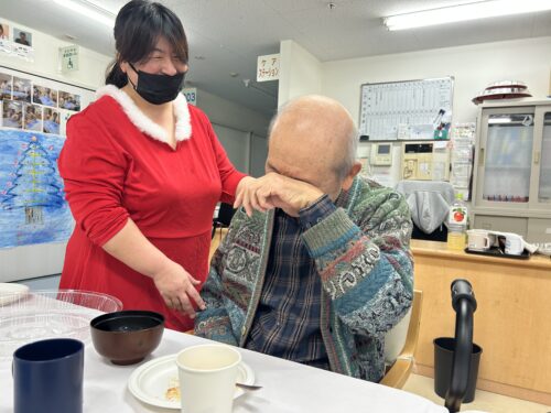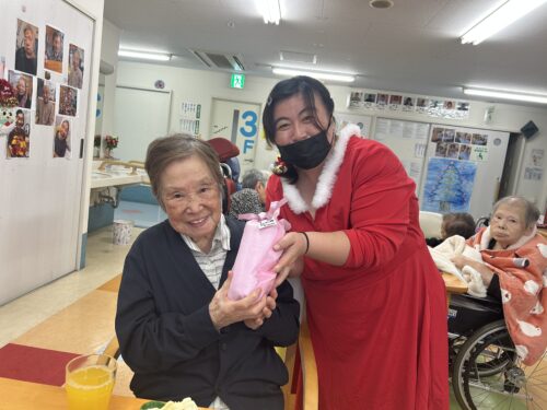 お食事の後は、、、職員サンタから皆様にクリスマスプレゼント渡しの時間です★★