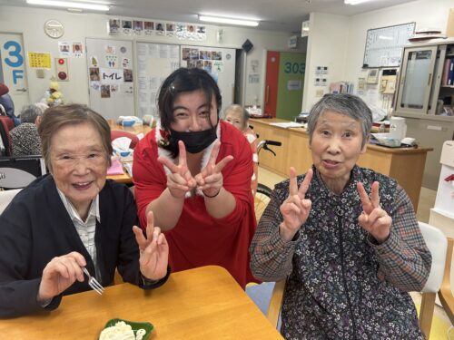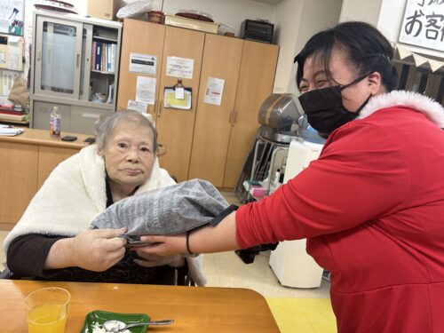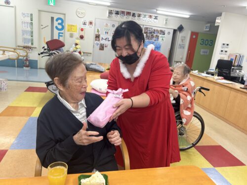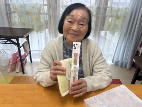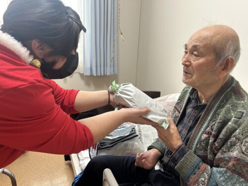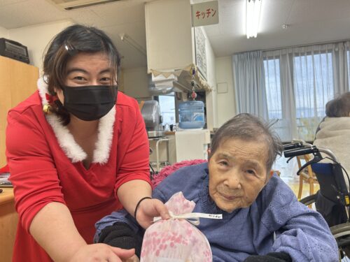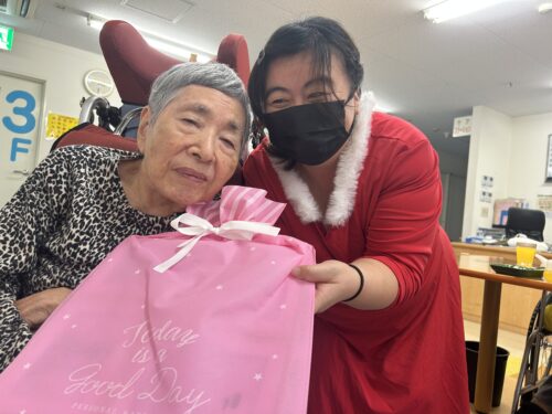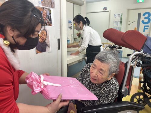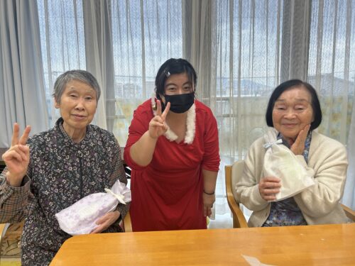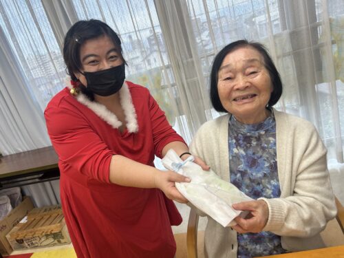 ご入居者様お1人お1人のプレゼントにとても喜ばれ嬉しくて「大切にします。」と言われてお部屋に持って帰られる方も