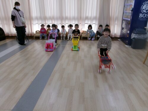 ベビーカーでぬいぐるみを迎えに行ってもらいます!