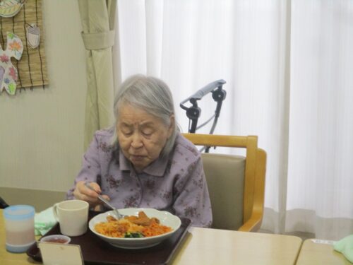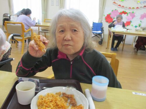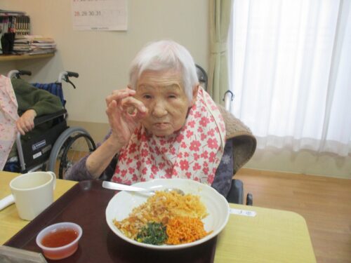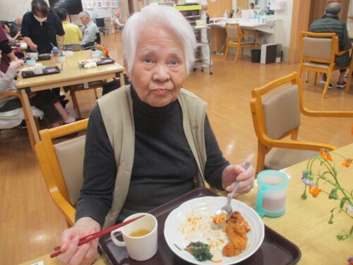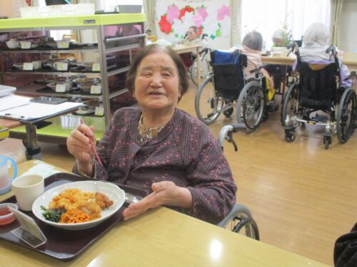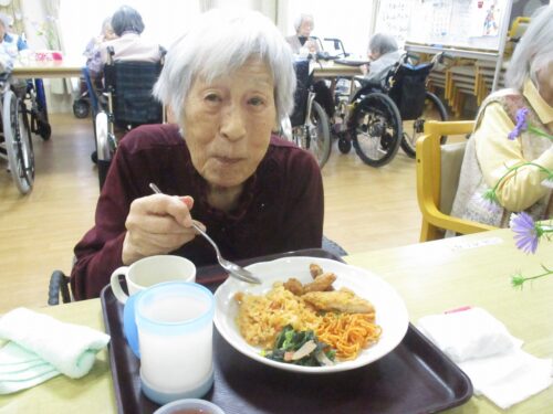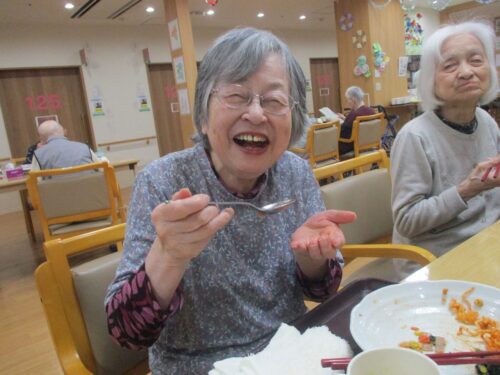 いつもニコニコな入居者様💕 美味しいですよとこの笑顔