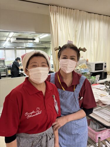 スタッフもクリスマスの飾りを付けて ハイポーズ