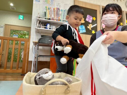 プレゼントを入れるNくん🎶
