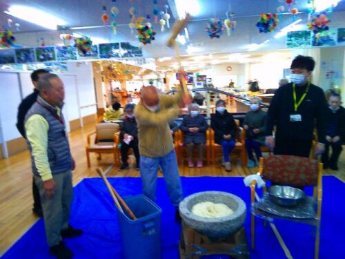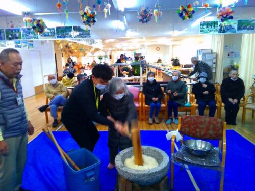 今日は螢風館の「餅つき」に入居者様が参加されて、「餅つき」を体験されました。👩🦱🧑🦱👩🦰👨🦰👩🦱