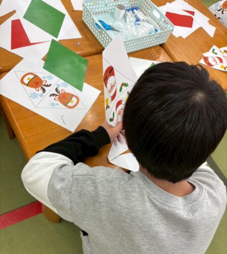 子ども達がサンタとトナカイのガーランドを作ってくれました。