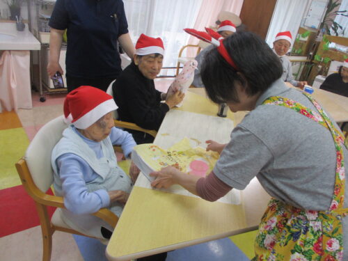 ケーキとシャンパンの後は、ひとりずつプレゼントをもらい