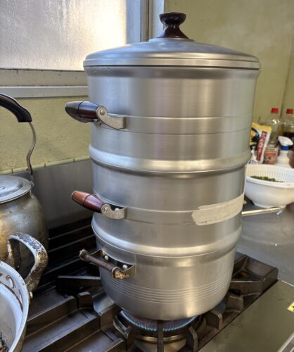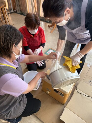 厨房で朝早くからもち米を蒸していただきましたヾ(^▽^*)))