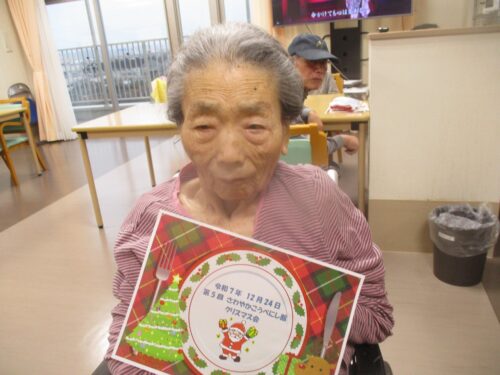 プレゼントについては、何がもらえるかはランダムでしたがサンタがくれたものを嬉しそうに開けられ、お部屋に飾ったり、車椅子等に飾ったりしておられました。