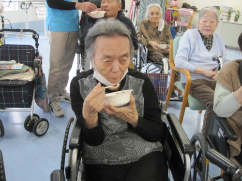 お餅つきの後は、おしるこの振る舞いです💖💖