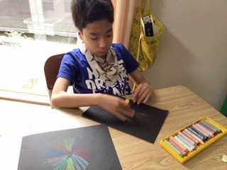 まずは画用紙にクレヨンで好きなように模様、線を書きます🎨🎨