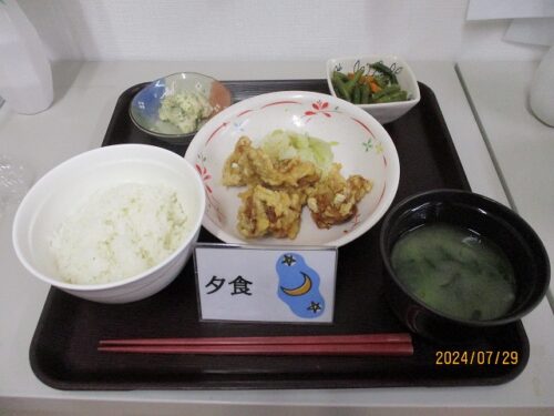 ご飯・鶏竜田揚げ🐓・いんげん胡麻煮