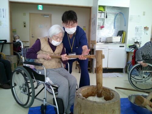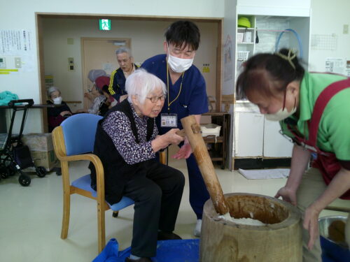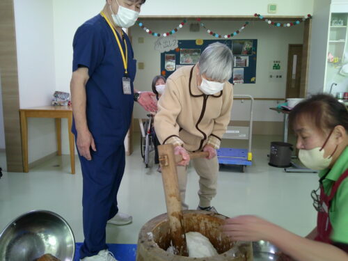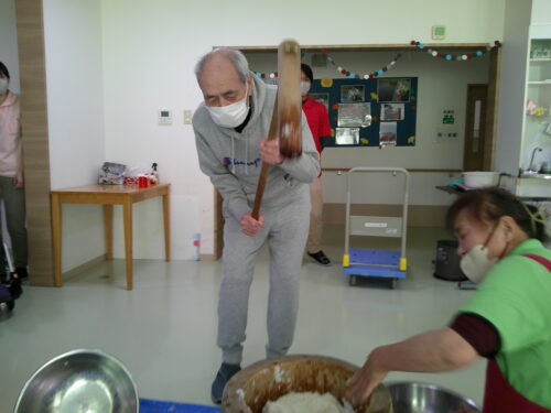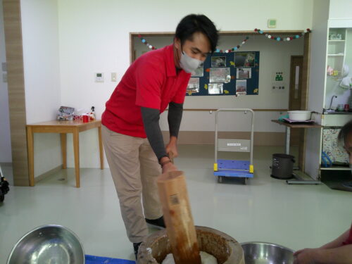 さわやかゆう輝の里 餅つきを行いました。 2025-12-28 2025-12-28 下準備を行ってます。 職員に手伝ってもらってよいしょー 頑張れ、頑張れ 力持ちでした。 一緒によいしょっと ちょっと控えめに 臼が届かず少し前に 職員と一緒に 実習生の力強い餅つきで思わず皆でよいしょ 昔ついた事あるのかな? 一人でつきたいと言われ