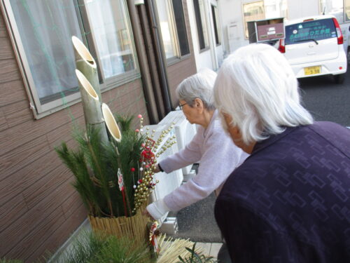 さわやかひだか館 門松作り🎍 2025-12-30 2025-12-29 お正月に向け門松作りを行い、お手伝い頂きました🎍 どの様に刺そうか迷いながらも…🤔 相談しながら頑張ってます😊 立派な門松が仕上がりました✨ さわやかひだか館ブログ担当😃