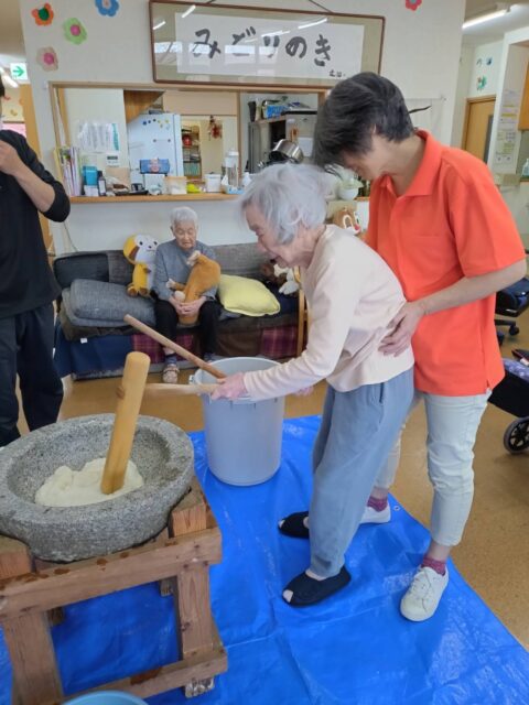 グループホームみどりのき グループホームみどりのき 最新情報 年末恒例 お餅つき 2025-12-29 2025-12-29 もうすぐお正月ですね ホームではちゃくちゃくと準備が進んでいます。 先日はお餅つきを開催しました。 男性陣頑張りましたよ^^ 入居者様も参加しました。 女性陣はつきたてお餅をコロコロと丸めました あとはお正月を待つばかり・・・ 門松も完成しました。