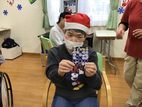 12月25日クリスマス当日、レク時間にクリスマス会にてビンゴをしました🥳