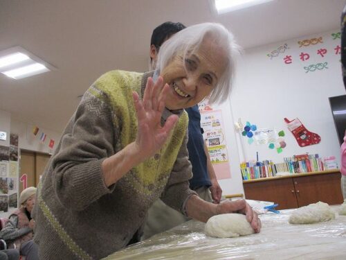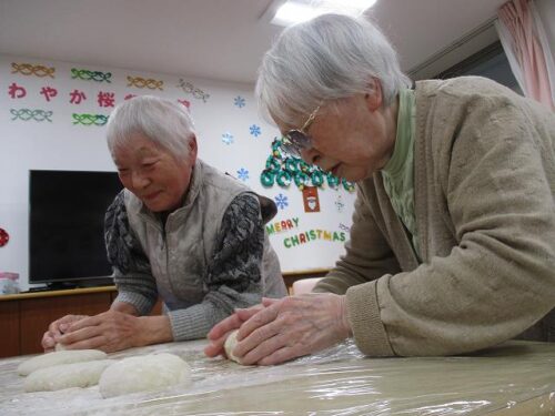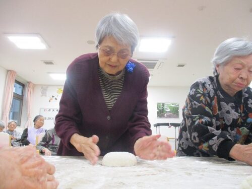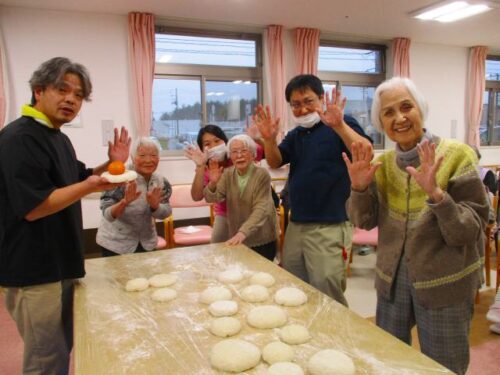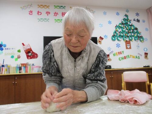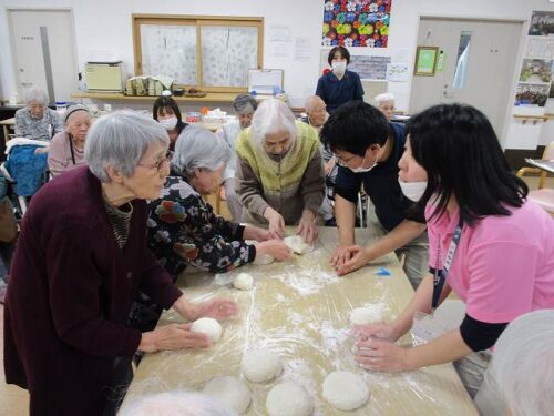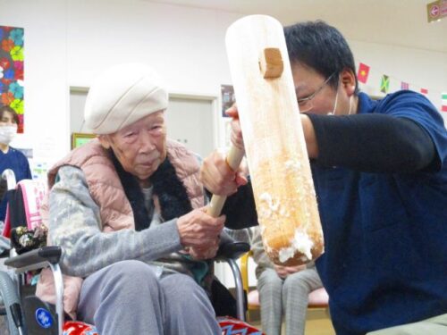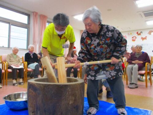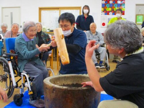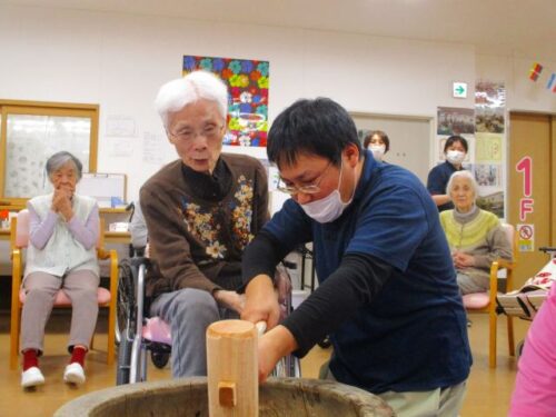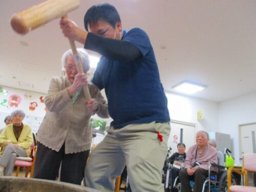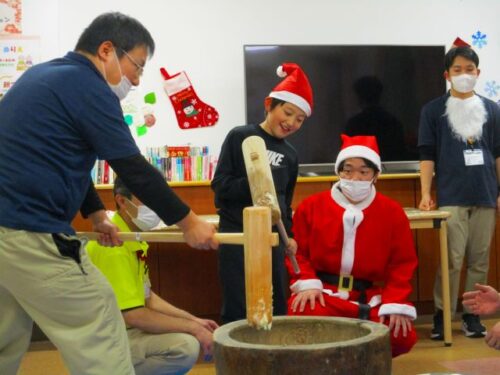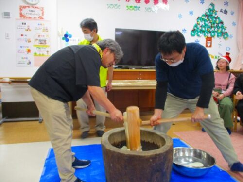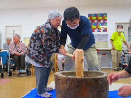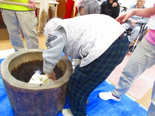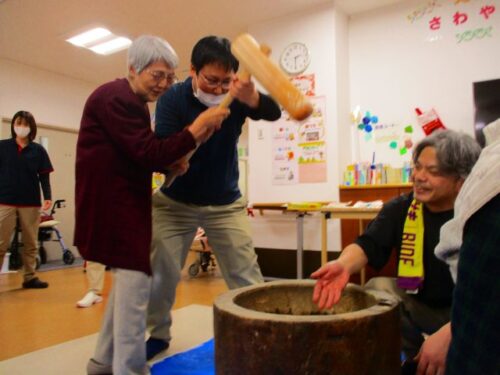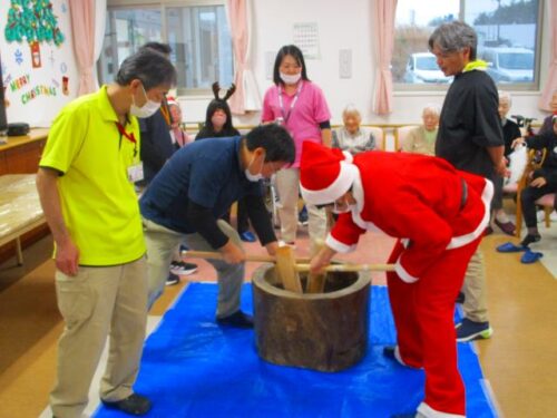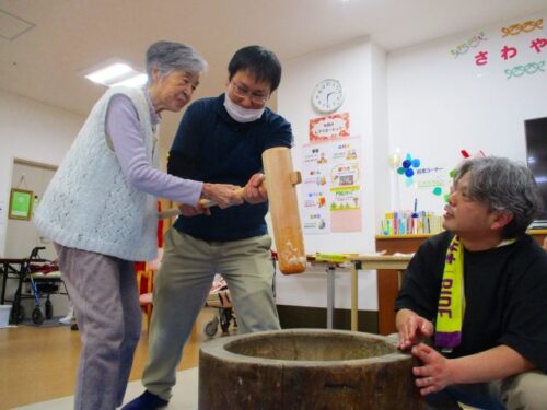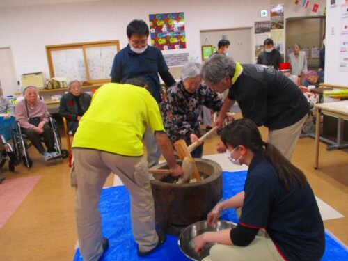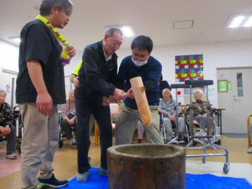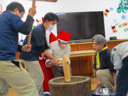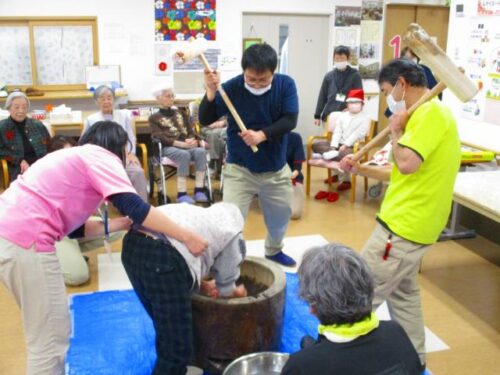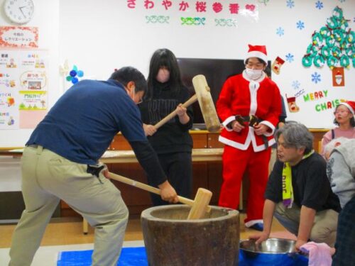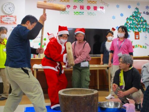 愛の家さくら館と合同での餅つきの様子を