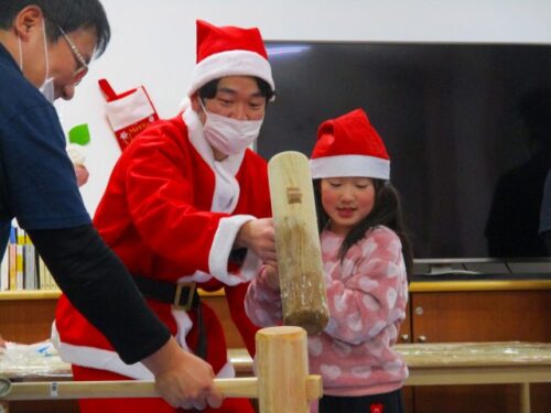 子どもたちも頑張って餅つきしました!