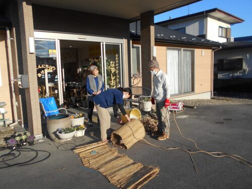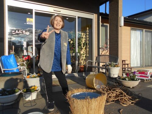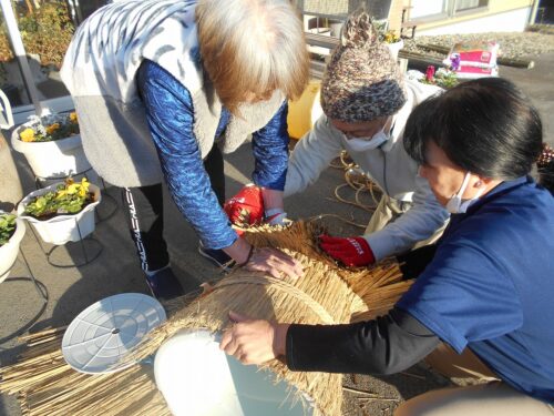 プランターなどの円柱形の入れ物に藁を巻きます🌾