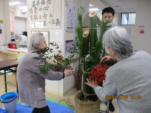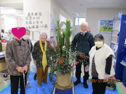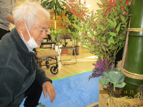 28日(日)に入所者様のご協力のもと、玄関前に飾る門松を作っていただきました✌(^^)/