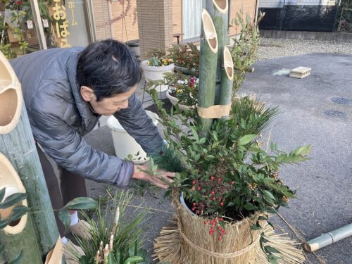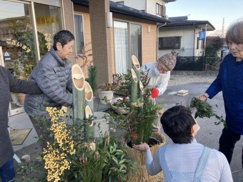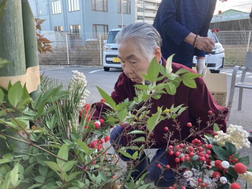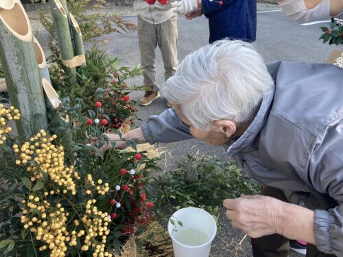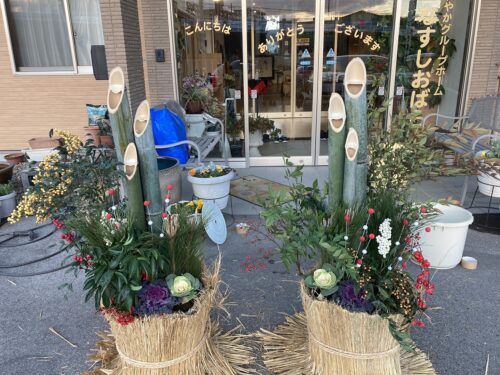 施設の玄関を彩る『門松🎍』を皆さまと一緒に作りました。