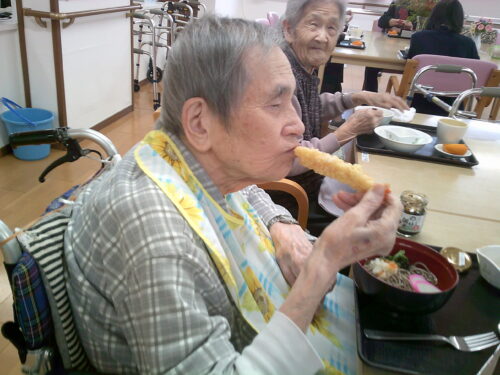 🍜🍜🍜昼食にはえび天の乗った年越しそばをご提供しました🍜🍜🍜
