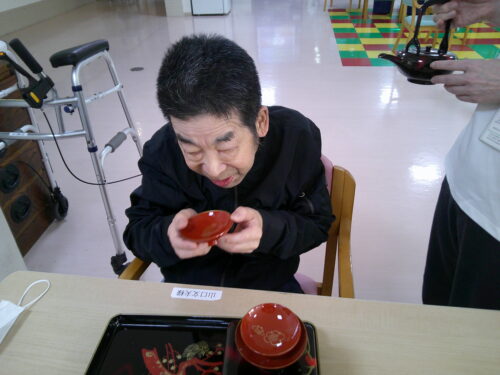 1階入居者様のお屠蘇を無病息災、長寿を願って