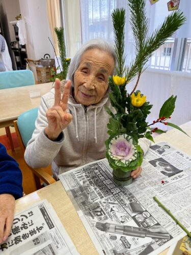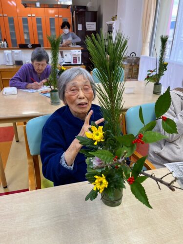 正月に飾る生け花を楽しみました🎵🎵
