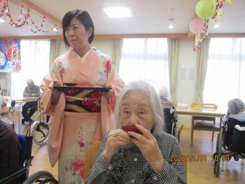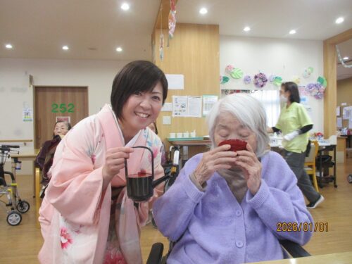 と心を込めて施設長よりお屠蘇🍶で~す。