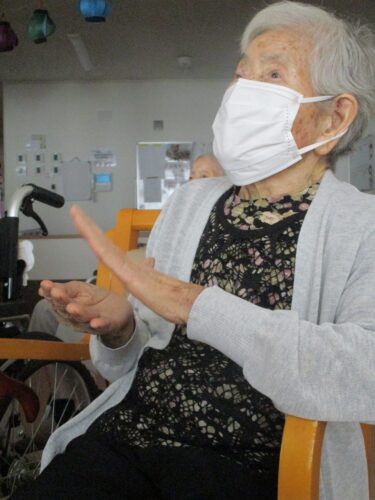 こちらのご入居者様はクスリーンを見ながら手拍子をされ、