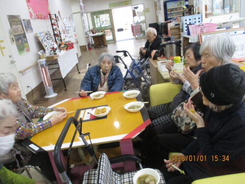 お昼に事務所で作った雑煮とお正月前に浸けていた数の子を食べる食べる。