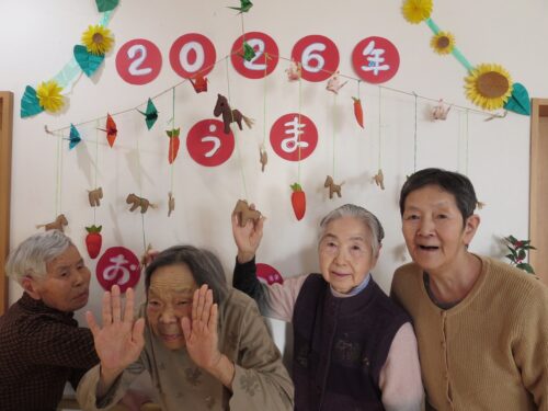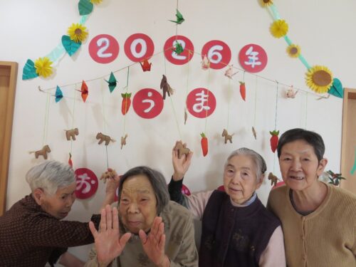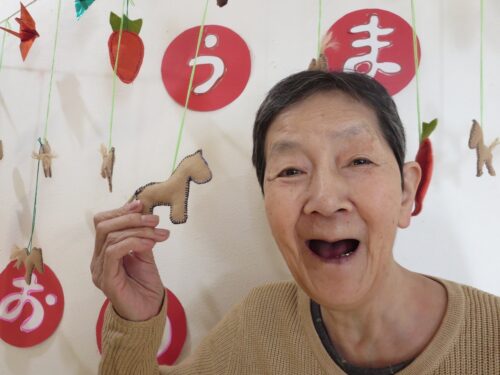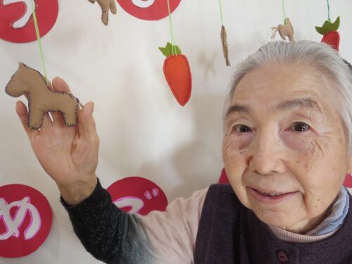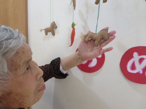 年末に皆さまに作って頂いた馬🐴と人参🥕のお人形で新年の飾りを作りました。