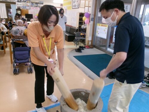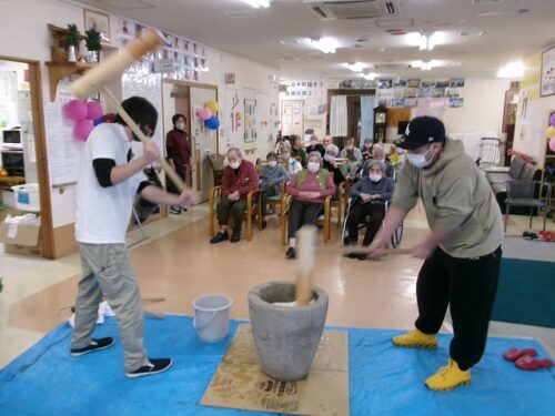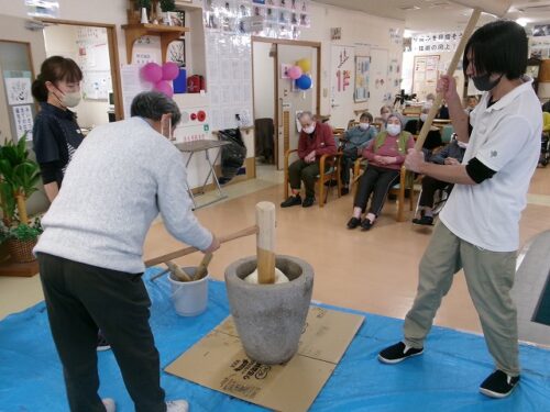 安全に配慮してつきたてのお餅を皆様へ提供いたしました(*^^*)