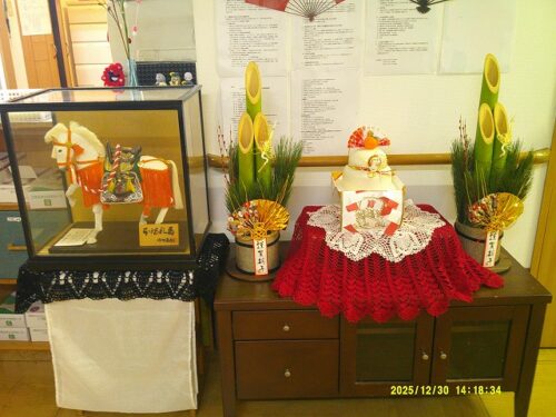 さわやか直方館 謹賀新年☆ 2026-01-02 2026-01-02 新年明けましておめでとうございます🎍 新しい年の幕開けとなりましたね~✨ 今年もどうぞ直方館をよろしくお願いいたします💙 門松だけではなく、たくさんの手作り作品が 飾られていますよ🤩🤩 担当:おおくぼ