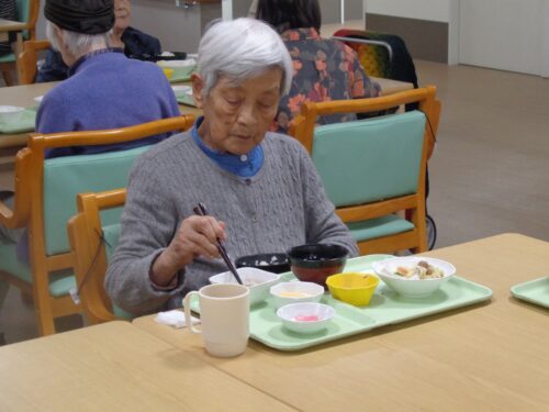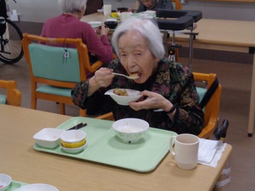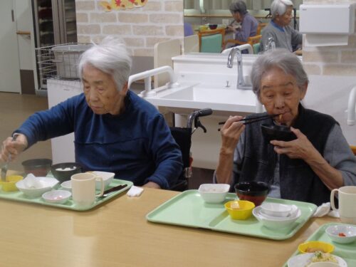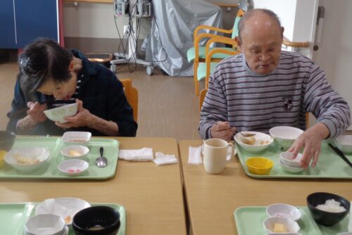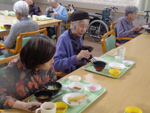 お食事のご様子です 本日のメニューは天ぷら🦐🍠