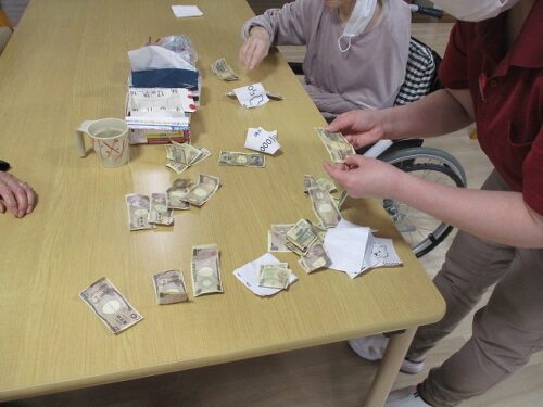 おやつ前におもちゃの紙幣を利用して