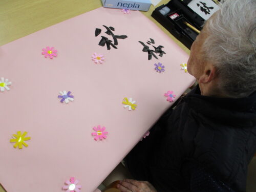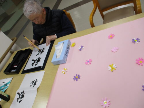 今回は毛筆で、壁画の文字をご入居者様に書いて頂きました(*´▽`*)