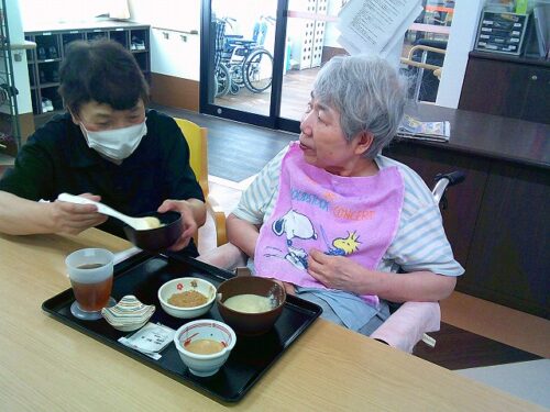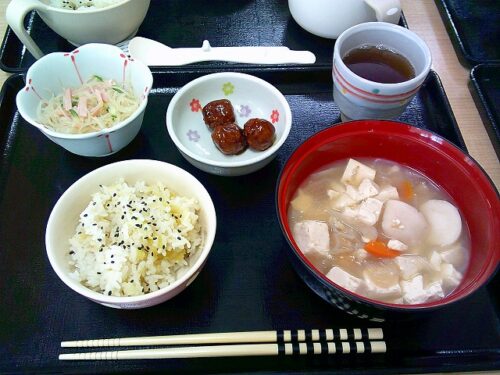 さわやかグループホーム むろらん お昼ご飯です🎵 2024-08-12 2024-08-11 先日のお昼ご飯は さつまいものご飯とけんちん汁を作りました さつま芋の甘さと ごま塩の塩加減が絶妙でしたよ けんちん汁はゴボウの旨味がよく出ていて 美味しかったです また がんばって料理します