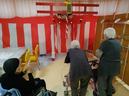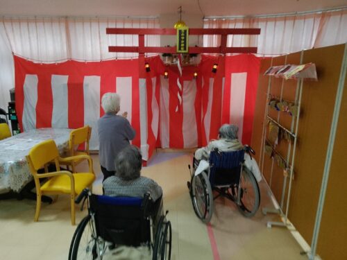 館内の神棚を装飾して神社気分を感じてもらえるようがんばりました