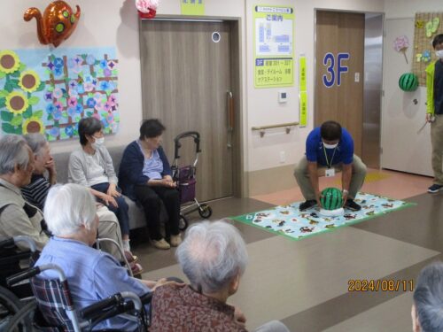 今回も前回に引き続きスイカ割りのご様子をご報告いたします。