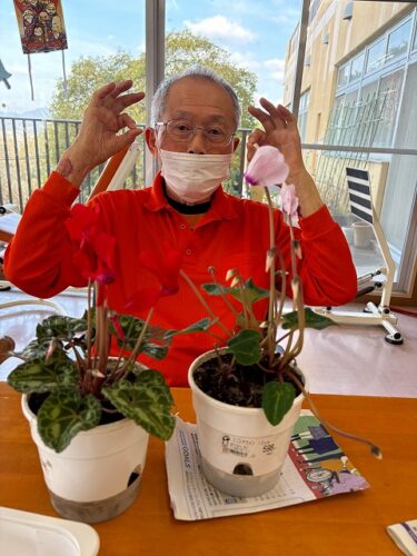 シクラメンの花が綺麗に咲いたので、脳トレをしながら一緒に写真会をしました(^_-)-☆