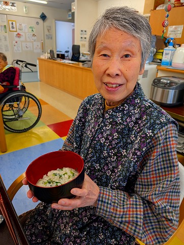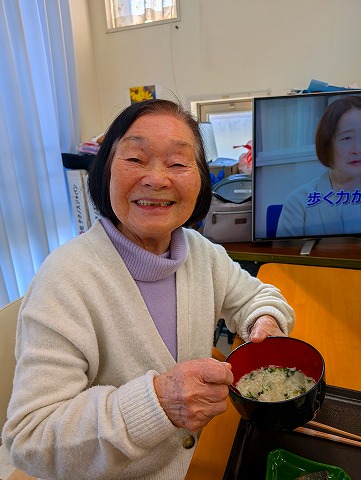 ⑦スズシロ(ダイコン)の七草が入ったお粥を調理の職員が作って下さいました(^^♪