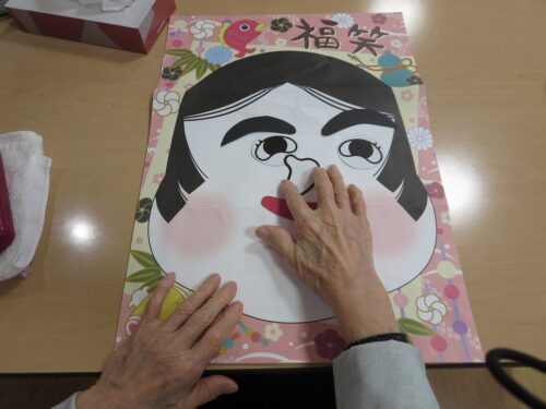 さわやかグループホーム なすしおばら すいせんユニットの様子 『お正月の風景その④』 2026-01-08 2026-01-07 『福笑い』をしました(*^_^*) 周りの方の声を頼りに手探りで一つ一つおいていきましたがなかなか難しいですね。 わいわいがやがやと楽しい時間でした(*^_^*)