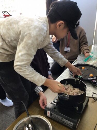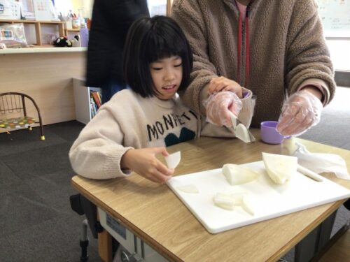 お肉や七草、野菜を包丁を上手に使って切ってくれました♪