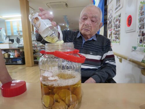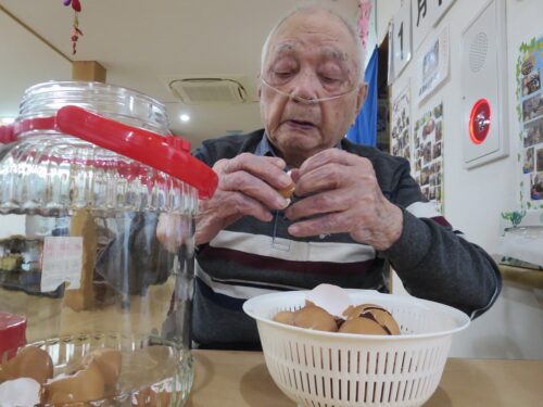 さわやかグループホーム なすしおばら すいせんユニットの様子 2026-01-12 2026-01-11 こだわりの『玉子酢』作りです。 20個の玉子の殻と一升のお酢で作ります。 玉子の殻が溶けたら完成です。 これがご長寿の秘訣です(*^_^*)