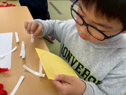 お手本がありましたが、みんな自分の好きなように顔を描いて、