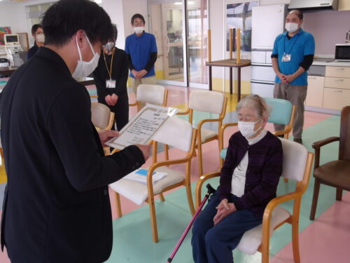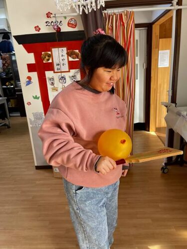 職員と一緒に羽子板を持ってぽーんと🎈