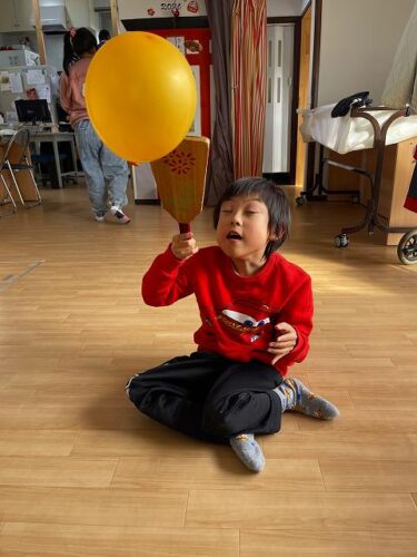 羽子板を使って風船でラリーをおこないました⭐