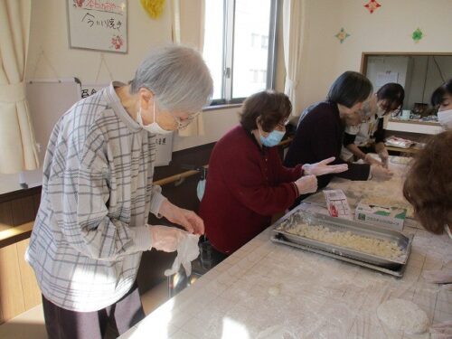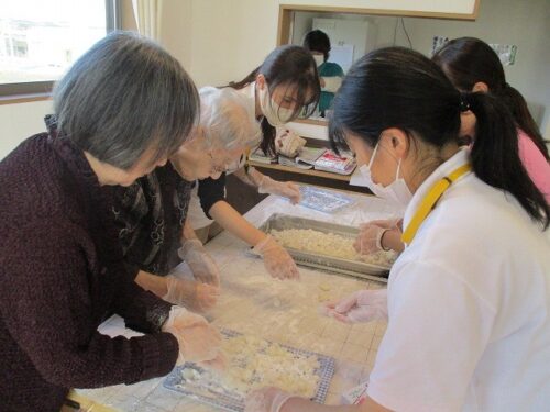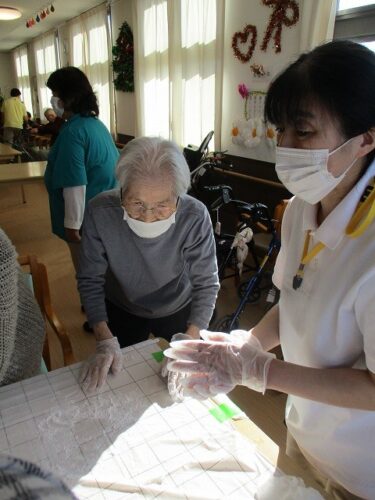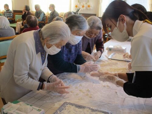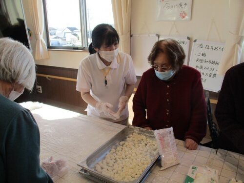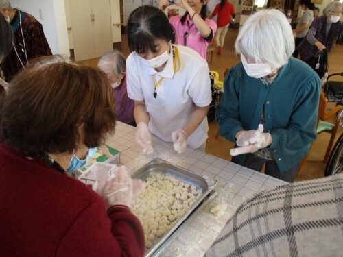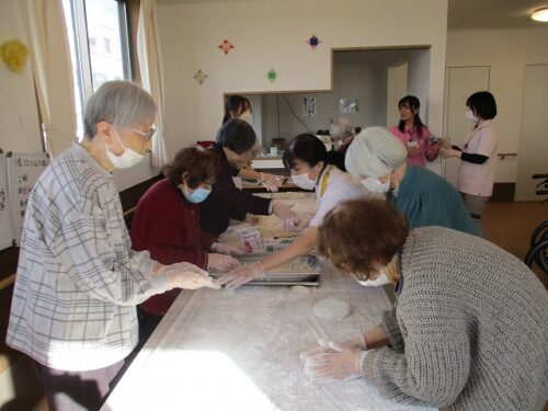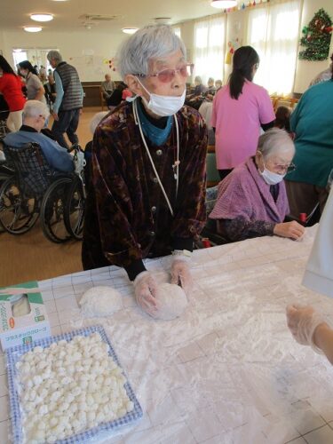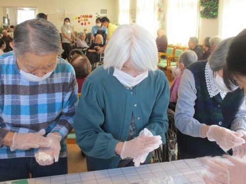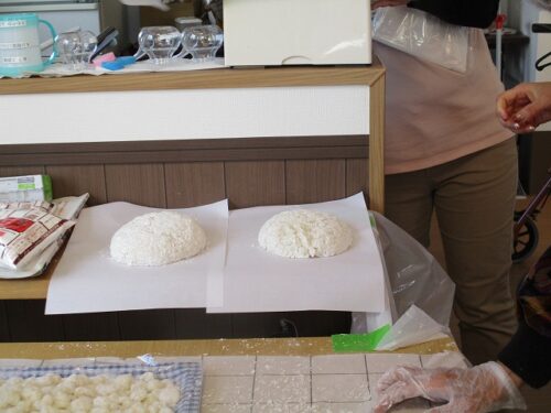 お汁粉用のお餅を、小さく丸めていきます🎵