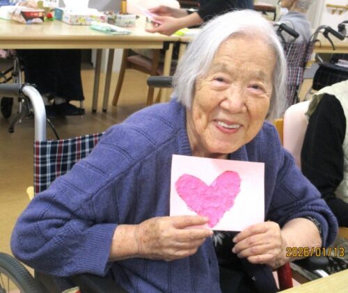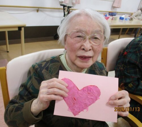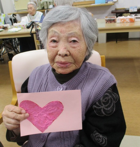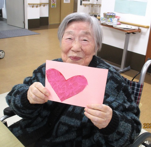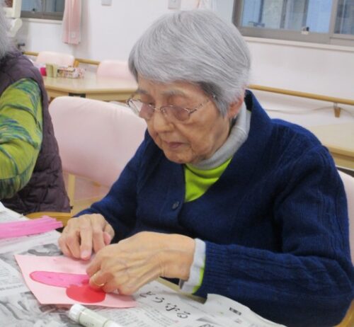 今回は2月の壁飾りを作っています!ハートの形に切った台紙に